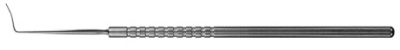 0.5mm x 10mm angled blade with blunt tip. Flat smooth handle with polished finish. Overall length: 128mm.