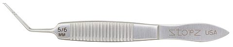This unique styled forceps are ultra-thin profile, allowing maximum maneuverability through a sub-2.0mm incision, without oar-locking or unnecessary distortion of the wound architecture during capsulorhexis. In addition, the 5.0mm and 6.0mm marks on the anterior blade surface allows the surgeon to create consistent, central capsulorhexis. Overall length: 81mm.